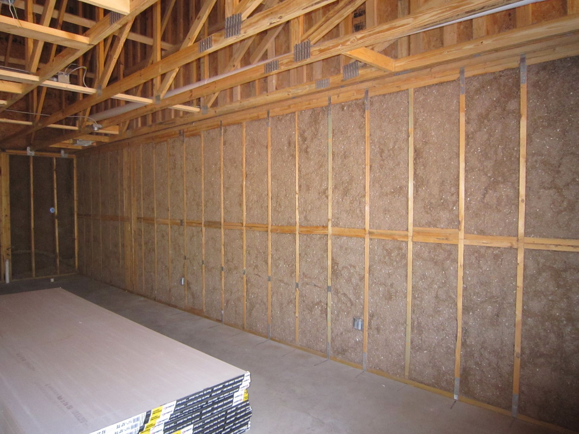 We offer Celbar, a mix of organic fibers that's treated with adhesive and fire-resistant substances. It created dead air spaces between its fibers to limit sound and heat transfer. Celbar is spray-applied in wall, floor, and ceiling cavities to form a monolithic coating. Celbar is applied just beyond the studs ensuring maximum coverage. Celbar is then planed flat creating an even, complete thermal barrier. Click here to learn more!