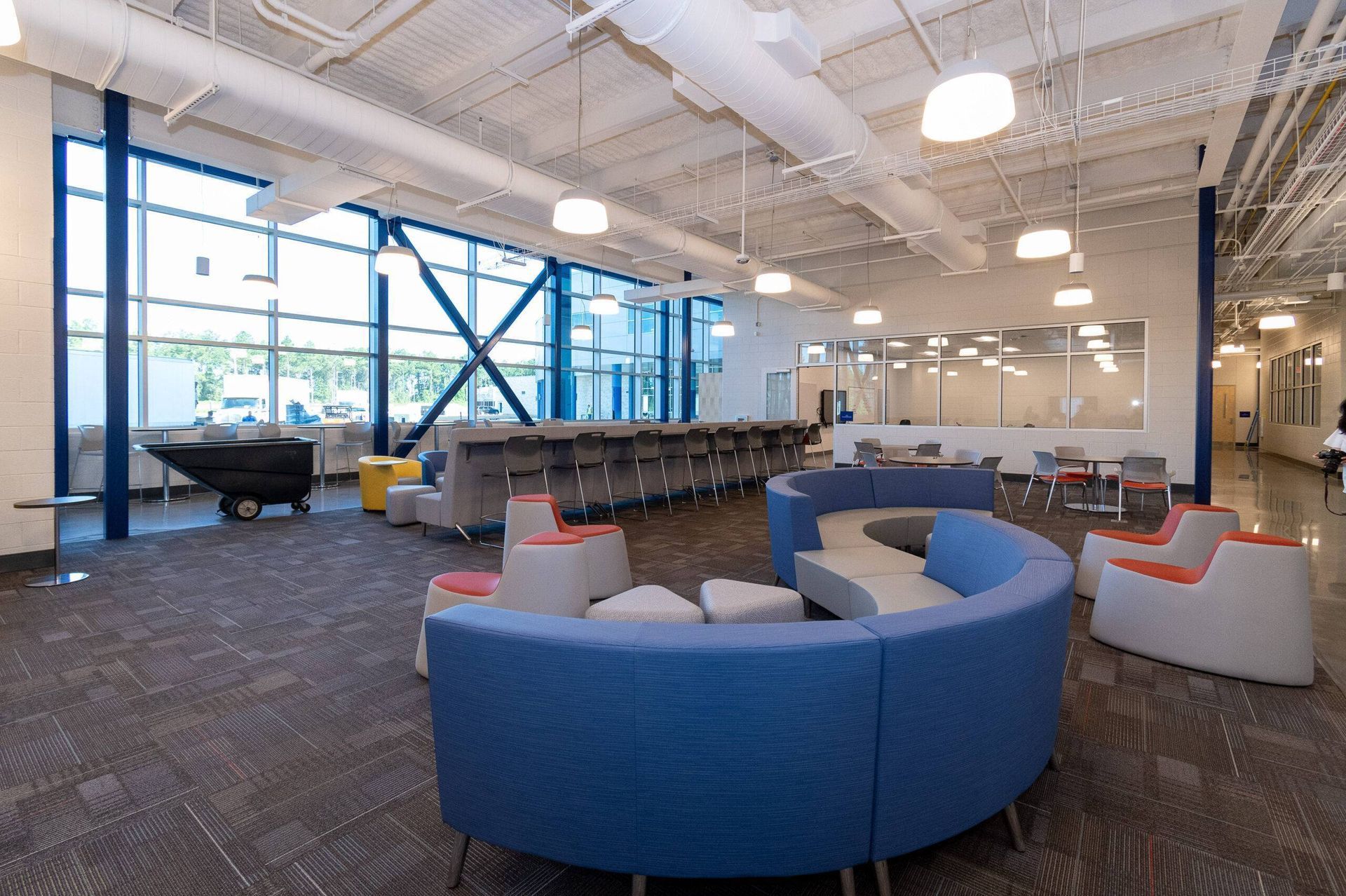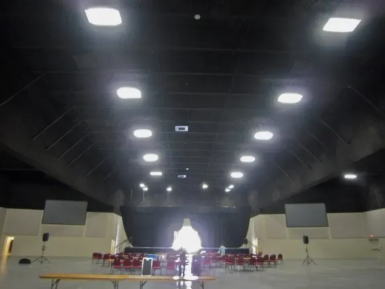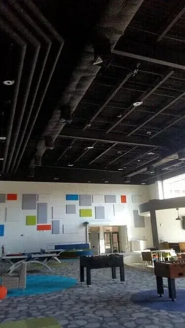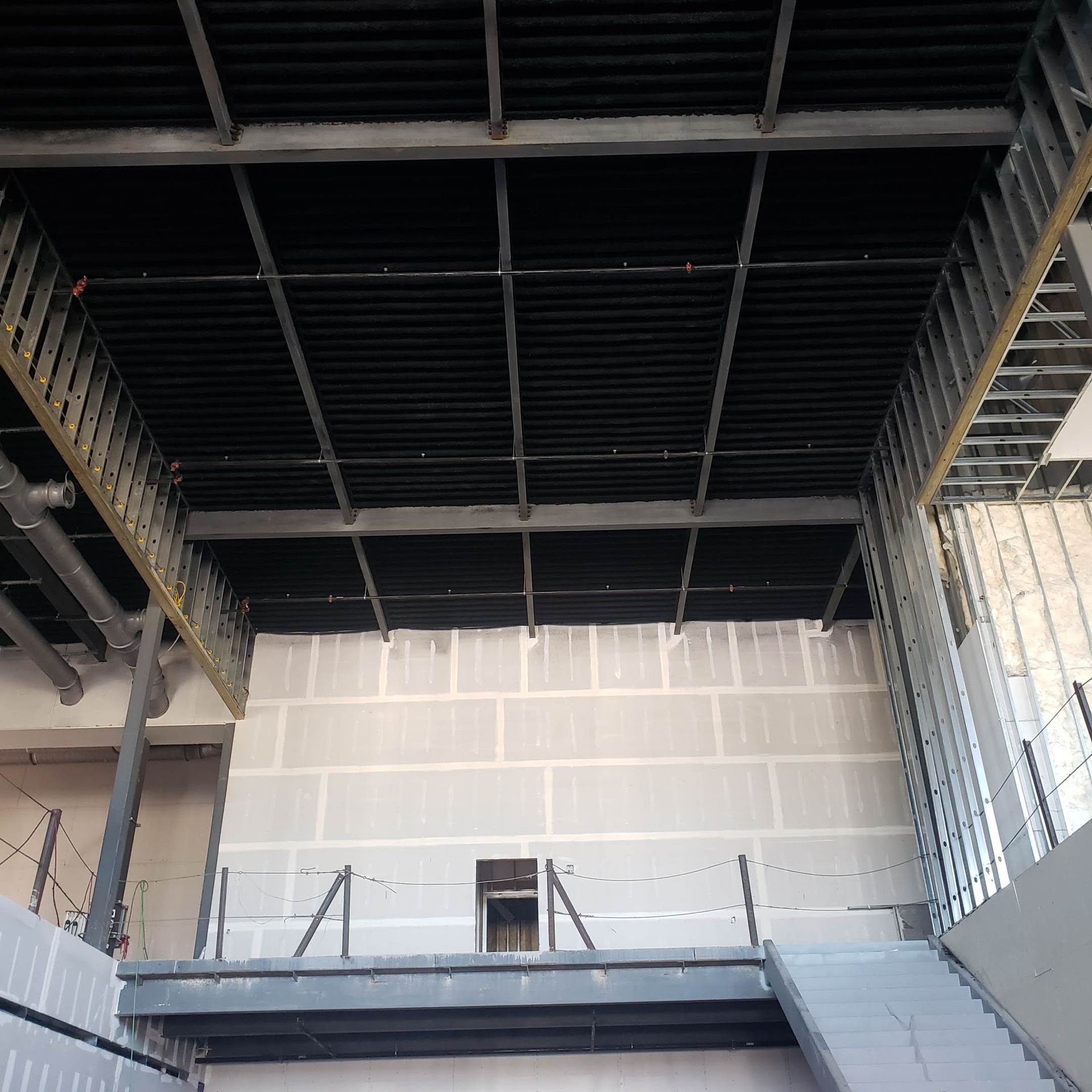 An exposed ceiling acoustical insulation offering high-performance sound control and customizable colors.
